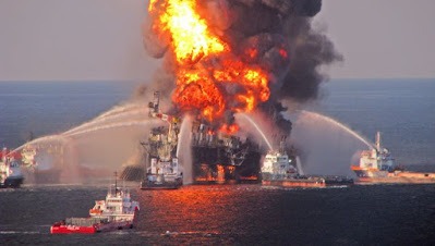 Foto’s van de zich voltrekkende olieramp met Deepwater Horizon in de Golf van Mexico en één van de gevolgen daarvan >> het platform werd destijds geleased door BP, van wie de CEO een paar jaar later het gore lef had te zeggen dat een olieramp goed is voor de regionale economie in het gebied waar zo’n ramp plaatsvindt……..