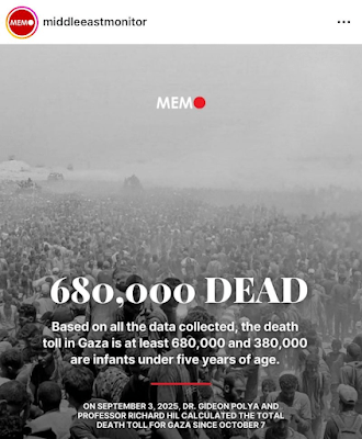 ‘680.000 Palestijnen vermoord sinds 7 oktober 2023, De Hannibal-richtlijn en ‘westerse terroristen van 70+’‘ (18 september 2025) En zie de video’s plus de berichten onder de links in dat artikel!!